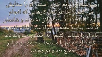 ستایش نیکویی خداوند خداوند را همیشه ستایش می کنم و شکر او پیوسته بر زبانم جاری است . او را…